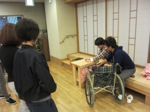 午後からは基本的な移乗介助法の練習を行いました。自立を支援するための工夫と介助法のマッチングです。