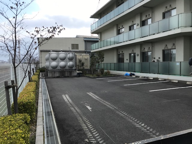 建設場所はカーサ月の輪の裏側駐車場です。カーサ月の輪正面からは全く見えませんが、
