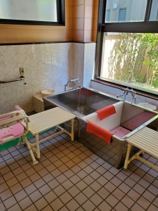幸寿会で統一している介護技術で、車いすの方でも安全にお風呂に入ることができます。