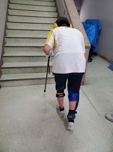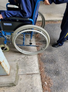内容は脳梗塞後遺症を患ったお年寄りの疑似体験と、車いす体験です。