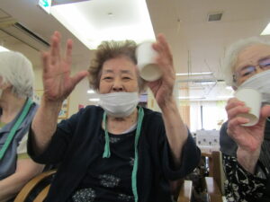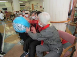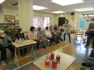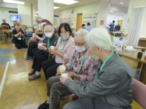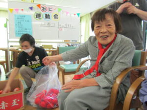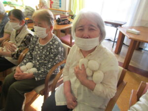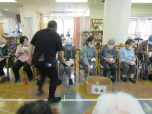 職員が籠を持って皆さんの前を通り過ぎる際に玉を入れてもらいました♪