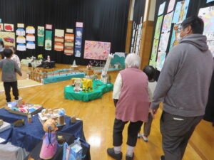 長等幼稚園様より作品発表会の招待を受け、利用者様と共に展示会へ参加し、子供たちの誘導のもと、楽しませてもらいました☆