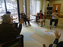 書初めの後は、健康すごろくを行い体を動かしていただき、