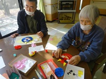 出来上がった作品は、ケアハウスの廊下に張り出しました。
