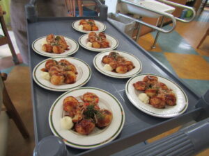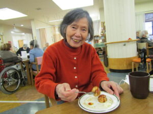 デイサービスでは定期的におやつ作りを行っています。今回はたこやきを作って皆様で食べました🐙